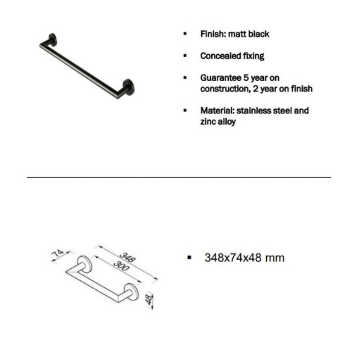 Λαβή λουτρού Nemox 30 cm από ανοξείδωτο χάλυβα, σε μαύρο ματ χρώμα, της ολλανδικής εταιρείας Geesa.
