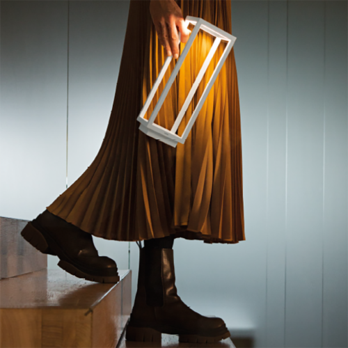 To επιτραπέζιο φωτιστικό Poldina είναι επαναφορτιζόμενο και αδιάβροχο.