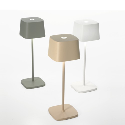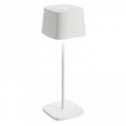 Επαναφορτιζόμενο επιτραπέζιο φωτιστικό αφής Ofelia, σε άσπρο χρώμα, από την ιταλική εταιρεία Zafferano με 2-ετή εγγύηση.