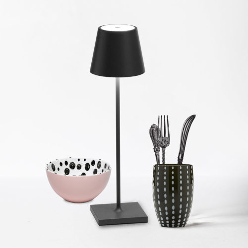 To επιτραπέζιο φωτιστικό Poldina είναι επαναφορτιζόμενο και αδιάβροχο.