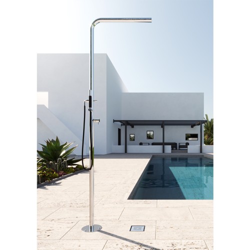 Στήλη ντους εξωτερικού χώρου SKinny S40 MIX από γυαλισμένο ανοξείδωτο χάλυβα (aisi 316) με ενσωματωμένη κεφαλή ντους και τηλέφωνο ντους.