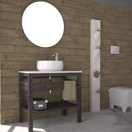 Είναι κατασκευασμένο έτσι ώστε να έχει μεγάλη αντοχή στις συνθήκες του μπάνιου (νερό, υγρασία). Ο πάγκος του επίπλου είναι από υλικό eco mineral και στην επιφάνεια του μπορεί να τοποθετηθεί επιτραπέζιος νιπτήρας.