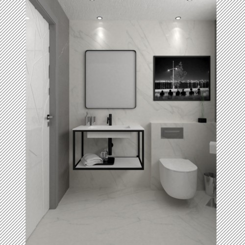 Διαθέτει νιπτήρα X-Solid Plus White μήκους 81 cm και ράφι X-Rail.