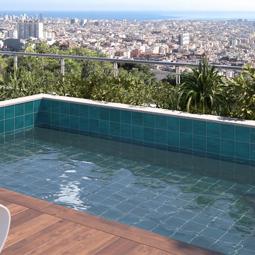 Πλακάκι πισίνας 15x15 cm σε μπλε χρώμα με γυαλιστερή επιφάνεια.