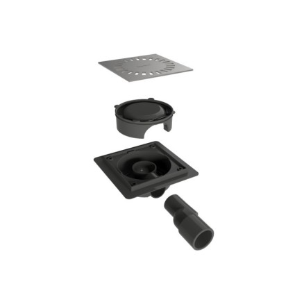 Σχάρα ντουζιέρας από ανοξείδωτο ατσάλι Aqua Compact, διάστασης 15x15 cm.Διαθέτει προέκταση σωλήνας γ..