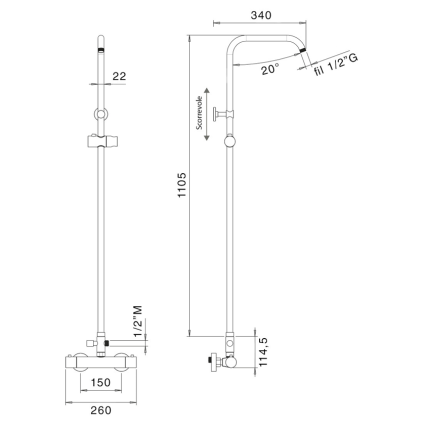 Βέργα ντους με τηλέφωνο SpheraΣτη συσκευασία περιλαμβάνεται:Συρώμενη ράγα Ø 25mm με ύψος 63 cmΤηλέφω..