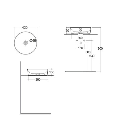 Νιπτήρας ένθετος Variant από λευκή γυαλιστερή πορσελάνη, στρογγυλός με διάμετρο 42 cm και ύψος 6 cm...