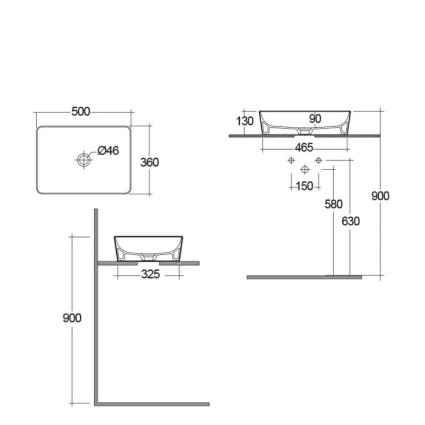 Νιπτήρας επιτραπέζιος Feeling από λευκή γυαλιστερή πορσελάνη, σε παραλληλόγραμμο σχήμα και διάσταση ..
