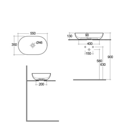 Νιπτήρας επιτραπέζιος Feeling από λευκή matt πορσελάνη, σε οβάλ σχήμα και διάσταση 55x35x13&nbs..