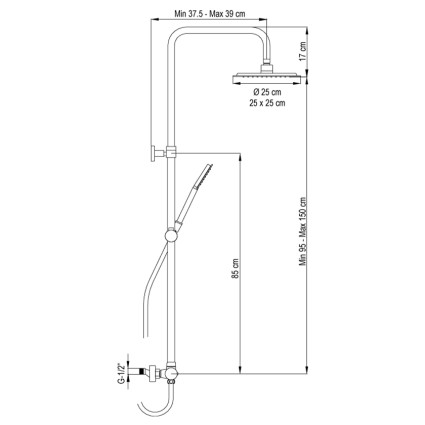 Σύστημα εντοιχισμού για ντους Tube με μαύρο ματ φινίρισμα.Περιλαμβάνει:Στρογγυλό πιάτο οροφής ..