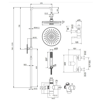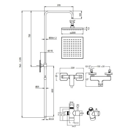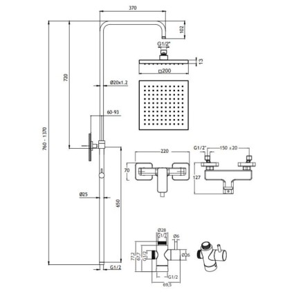 Στήλη ντους Tech 2 εξόδων inox.Περιλαμβάνει:ΜπαταρίαΚολώναKεφαλή ντους 20x20 εκ.Τηλέφωνο με στή..