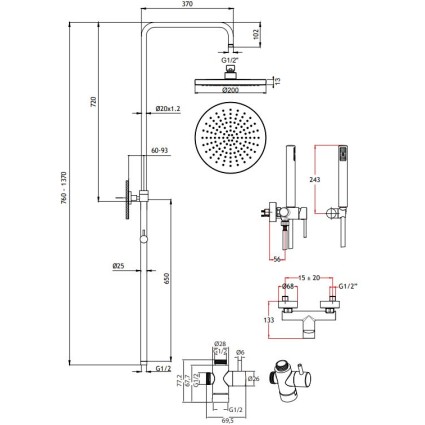 Στήλη ντους Tech 2 εξόδων με μαύρο ματ φινίρισμα.Περιλαμβάνει:ΜπαταρίαΚολώναKεφαλή ντους antica..