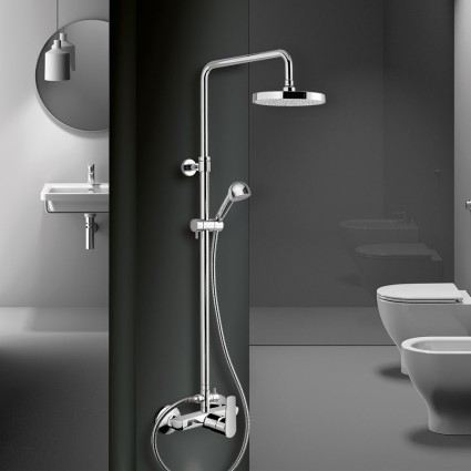 Στήλη ντους Klint με σταθερό ύψος 117 cm.Ανακλινόμενη κεφαλή ντους anticalcare.Τηλέφωνο anticalcareΣ..