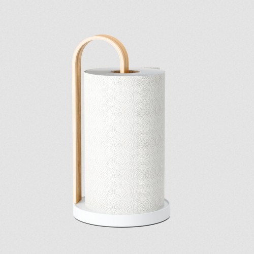 Βάση για χαρτί κουζίνας Bellwood της εταιρείας Umbra, κατασκευασμένο από από ανανεώσιμο ξύλο και μεταλλική βάση.