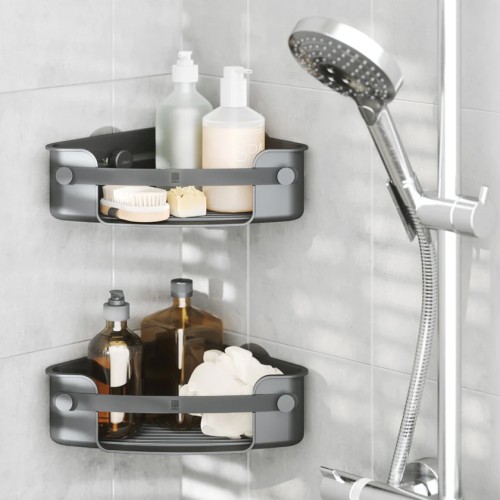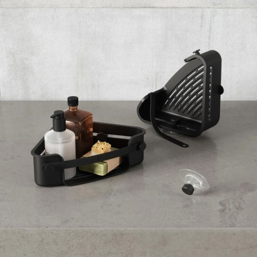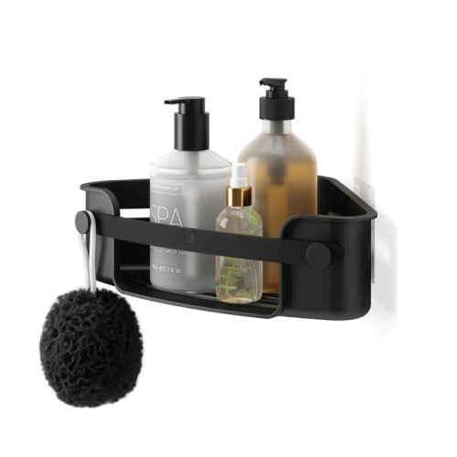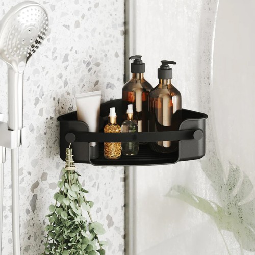 Επιτοίχια γωνιακή ραφιέρα μπάνιου σε μαύρο φινίρισμα, μεταλλική.