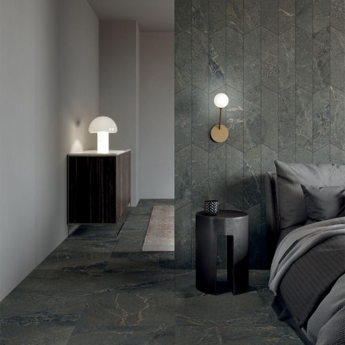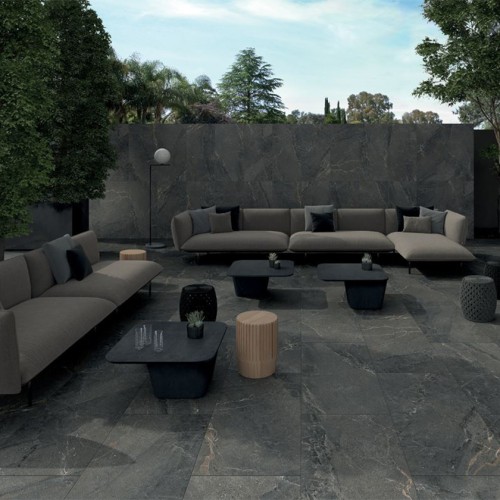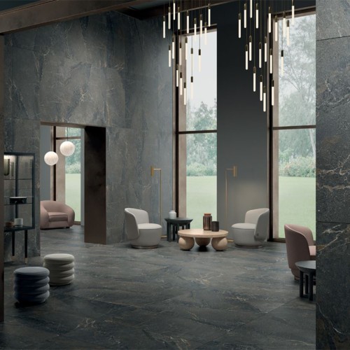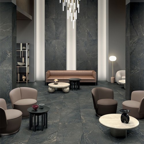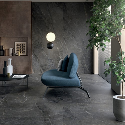 Γρανιτοπλακάκι 60x120 cm με ματ επιφάνεια σε μαύρη απόχρωση που παραπέμπει σε ένα συνδιασμό πέτρας και μαρμάρου.