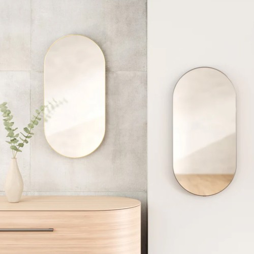 Καθρέπτης κρεμαστός με μεταλλικό πλαίσιο σε χρυσό χρώμα, της εταιρείας Umbra.