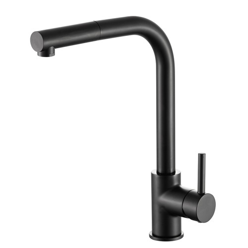 Ορειχάλκινη, αναμεικτική με μονή λαβή σε μαύρη ματ απόχρωση με συρόμενο ντους.