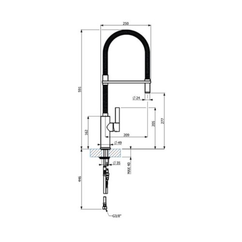 Μπαταρία κουζίνας Chef χρωμέ, με μεταλλικό σπιράλ, διάστασης Ø2.4x25x59.1 cm