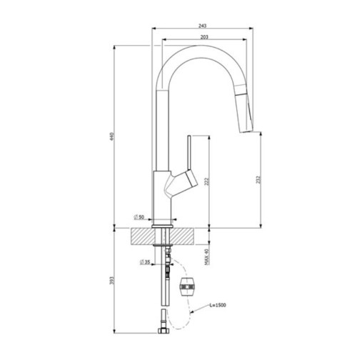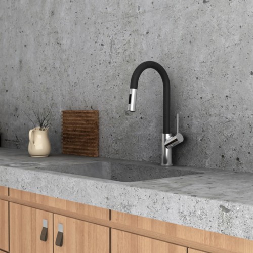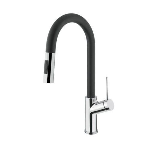 Μπαταρία κουζίνας Edge χρωμέ, με συρόμενο ντους 2 ροών και ρουξούνι ορειχάλκινο ματ, διάστασης Ø5x24.3x44 cm