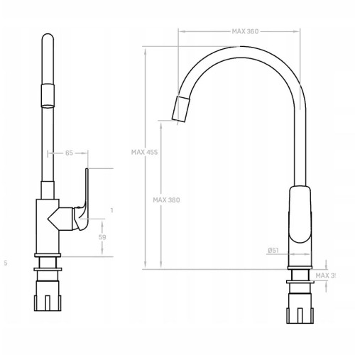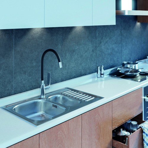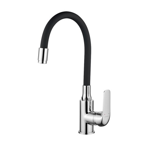 Μπαταρία Νεροχύτη αναμεικτική με μονή λαβή με κλασικό και κομψό φινίρισμα χρωμίου σε συνδυασμό με μαύρο ευλύγιστο ρουξούνι.