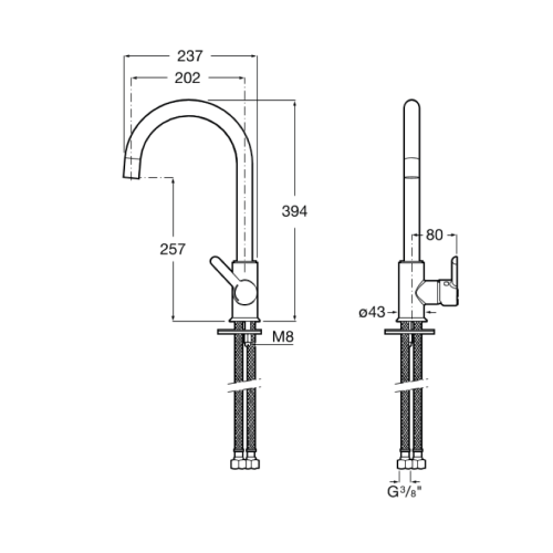 Μπαταρία κουζίνας Mencia, με λευκό φινίρισμα, διάστασης Φ4.3x23.7xH39.4 cm.