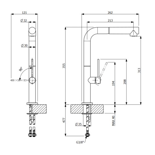 Διαθέτει περιστρεφόμενο ρουξούνι και συρόμενο ντους.
