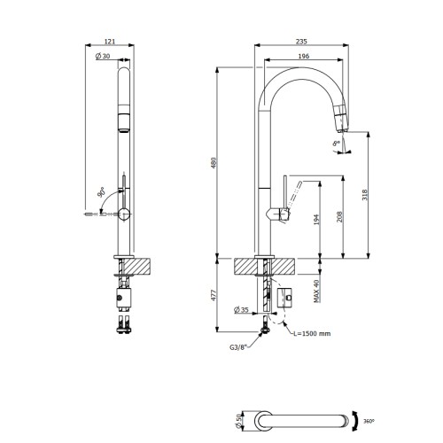 Διαθέτει περιστρεφόμενο ρουξούνι και συρόμενο ντους.