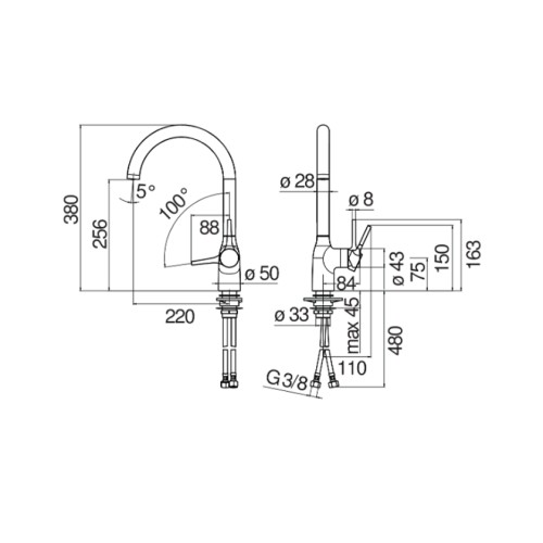 - εύκαμπτο σωλήνα από ανοξείδωτο ατσάλι ø 3/8