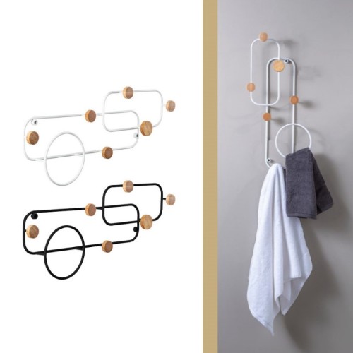 Κρεμάστρα με 6 άγκιστρα Forme, κατασκευασμένη από μέταλλο και ξύλο, ιδανική για τον τοίχο του μπάνιου, του υπνοδωματίου ή της ει΄σοδου