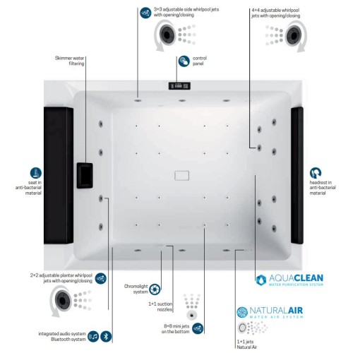 - 18 jet περιμετρικά & 16 jet στον πάτο