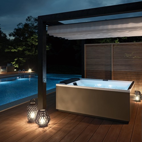 Mini πισίνα Divina Outdoor 2 ατόμων, με λευκό ακρυλικό gloss χρώμα.