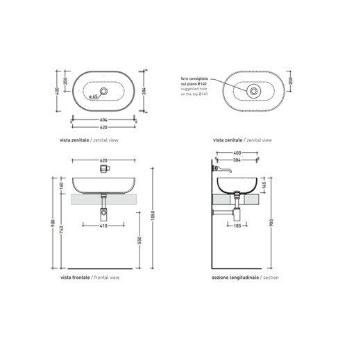 Νιπτήρας επιτραπέζιος App 62 από matt πορσελάνη.