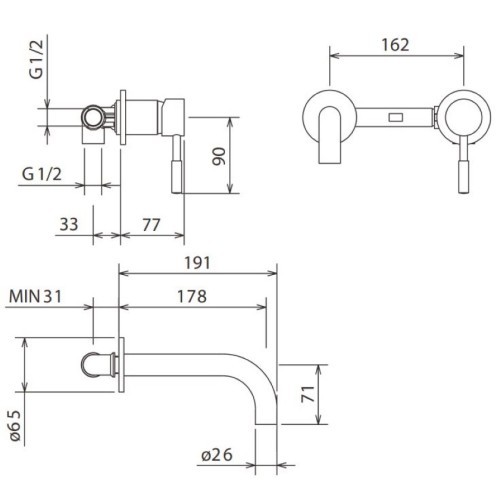 Μπαταρία Νιπτήρος Εντοιχισμού 2 οπών New Tech White Matt