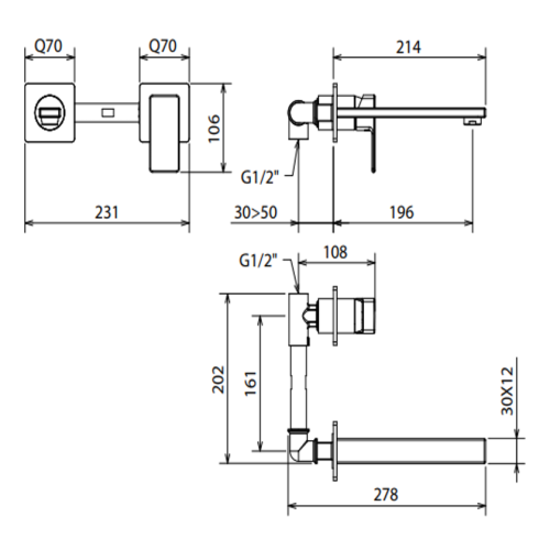 Μπαταρία νιπτήρος εντοιχισμού 2 οπών σε χρωμε φινίρισμα.