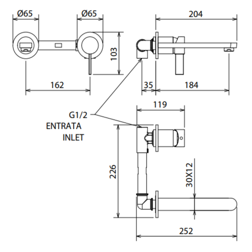 Μπαταρία νιπτήρος εντοιχισμού 2 οπών σε χρωμε φινίρισμα.
