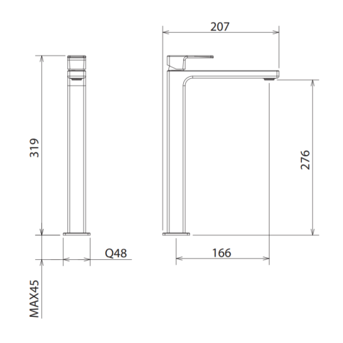 Μπαταρία νιπτήρος ψηλή Profili σε τετράγωνη γραμμή.