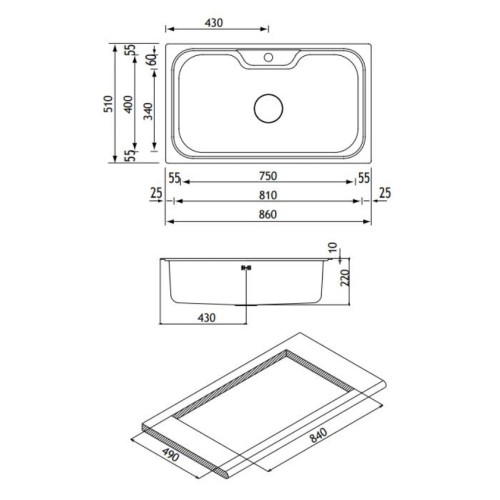 Νεροχύτης από ανοξείδωτο χάλυβα Apell Criteria CR860, διάστασης 86x51 cm.