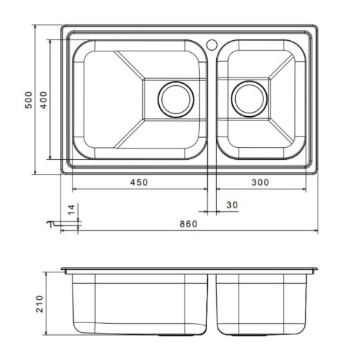| Διάσταση γούρνας | 1η γούρνα: 45x40x21 cm, 2η γούρνα: 30x40x21 cm |