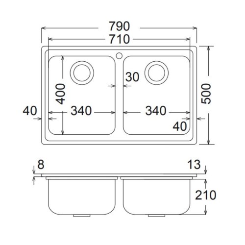 Νεροχύτης από ανοξείδωτο χάλυβα Apell Linear 8580, διάστασης 79x50 cm.