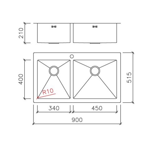Νεροχύτης ανοξείδωτος Macart StaR/10 N-200 με δύο γούρνες, διάστασης 83x51.5cm, με Satin (Λεία) επιφάνεια.