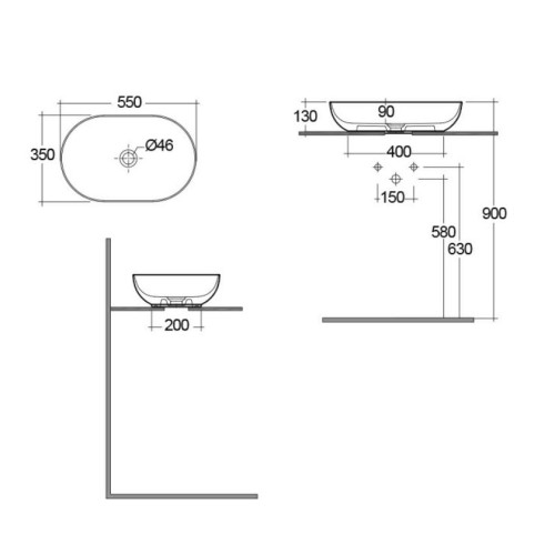 Νιπτήρας επιτραπέζιος Feeling από πορσελάνη σε μαύρο ματ χρώμα, σε οβάλ σχήμα και διάσταση 55x35x13 cm.