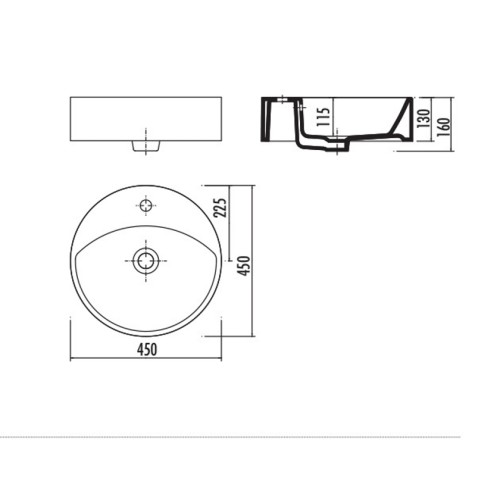 Νιπτήρας στρογγυλός επιτραπέζιος MN 145 από πορσελάνη λευκή, διάστασης 45x45x16 cm.