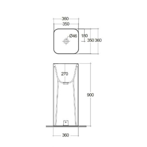 H διάστασή του είναι 36x36 cm και το ύψος του είναι 90 cm .