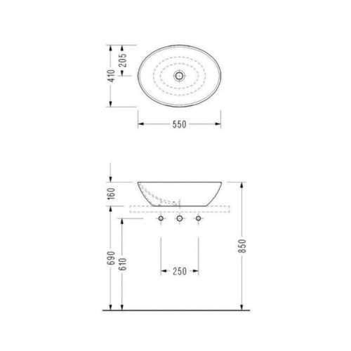 Νιπτήρας επιτραπέζιος Serel CH33 σε σχήμα οβάλ, διάστασης 55x41cm