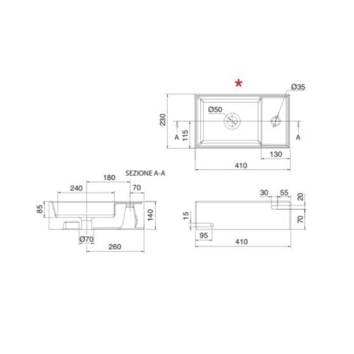 Νιπτήρας παραλληλόγραμμος Teorema /R, διάστασης 41x23 cm.