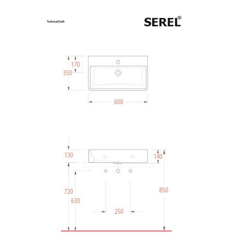 Νιπτήρας Serel Tetra 2046, διάστασης 60x35 cm, χωρίς υπερχείλιση.