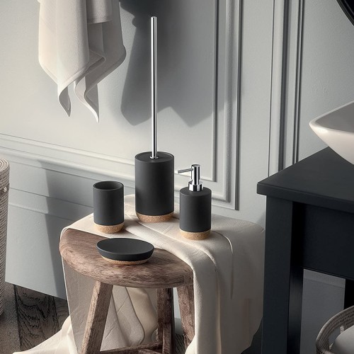 Ντισπένσερ Ilary κατασκευασμένη από κεραμικό και φελλό, σε ματ μαύρη απόχρωση.