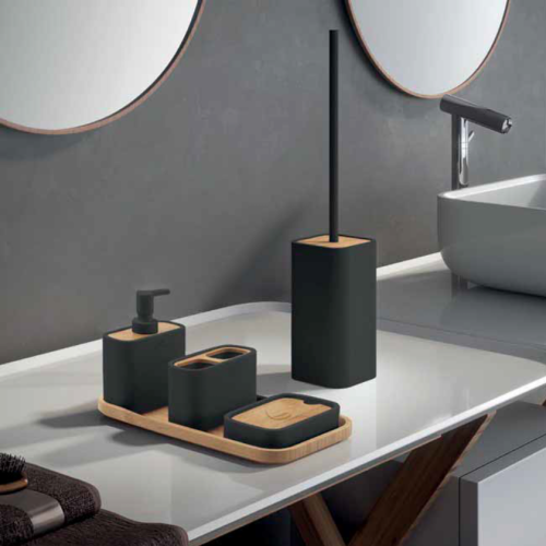 Ντισπένσερ Ninfea σε χρώμα μαύρο ματ. Κατασκευασμένο από ρητίνη και μπαμπού, από την Ιταλική εταιρία Gety.