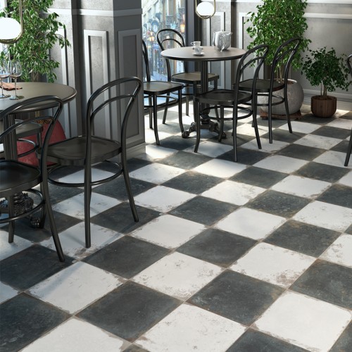 Extra tip: Για να δημιουργήσετε ένα δάπεδο τύπου σκακιέρα, συνδυάστε το με το Antique Black 33x33 cm.
